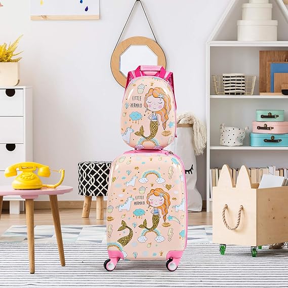 Robusta e durevole - Il nostro set di 2 valige per bambnini è realizzato in materiale ABS ecologico e ricoperta con motivi di pellicola per PC. La pellicola aiuta efficacemente contro graffi e sporco e rende la custodia particolarmente robusta e durevole. Una valigia robusta adatta all'uso da parte dei bambini. Design ergonomico - Il trolley e lo zaino per bambini so realizzato in alluminio di alta qualità ed è robusto e durevole. L'altezza della barra è regolabile, adatta a bambini di diverse altezze. La lunghezza della cinghia dello zaino può essere regolata, il che porta più comodità ai bambini. Pratico compagno di viaggio- Le cinghie incrociate all'interno della valigia terranno in ordine i tuoi bagagli. Lo zaino può essere utilizzato anche come borsa da scuola. Le cerniere sono di alta qualità e completano la qualità di questo zaino. Facile da trasportare - Quattro ruote possono ruotare liberamente di 360°. Le ruote funzionano magnificamente, sono resistenti e silenziose. Lo zaino e il trolley hanno ciascuno una maniglia che rende comodo afferrare questi bagagli a mano.