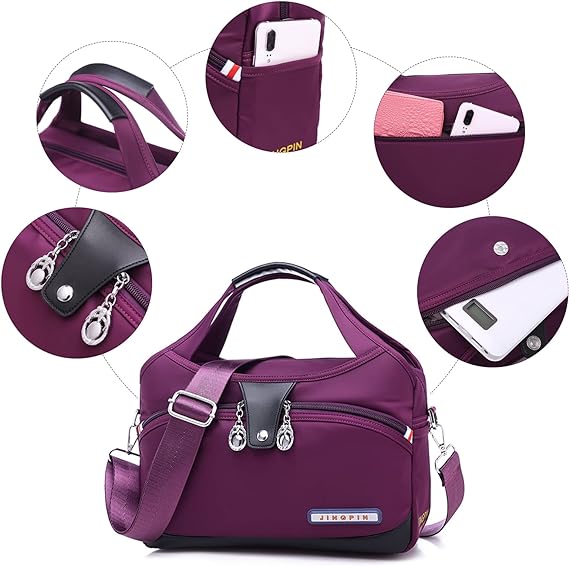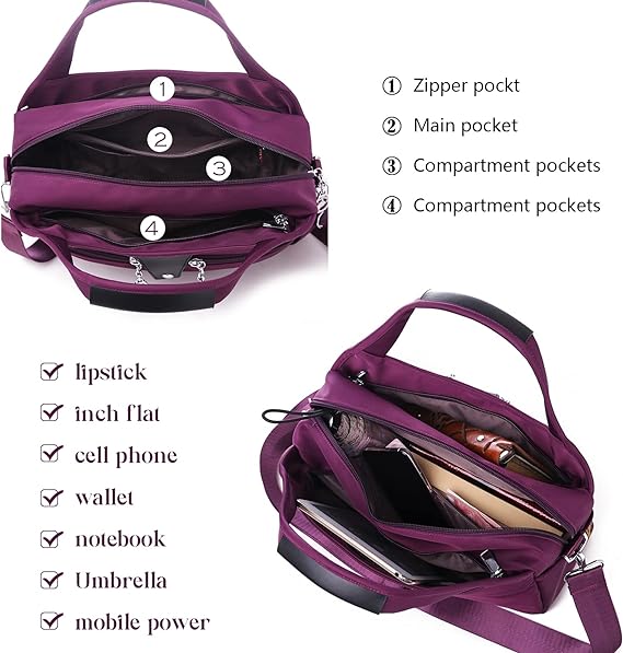 la borsa ha 9 tasche, (può essere posizionato ombrelli, telefoni cellulari, carte d'identità, un cambio di vestiti, ecc) Design multi-tasche per chi lo indossa per fornire oggetti puliti e di facile accesso, utilizzando materiale in nylon impermeabile di alta qualità, design classico. Dimensioni del collo spedito: 33,79 x 19 x 7,2 cm; 430 grammi