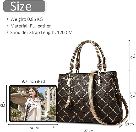 Dimensioni perfette: 27 x 13 x 19.5 cm. Peso: 0.85 kg. Lunghezza impugnatura: 13 cm. La borsa a tracolla contiene 2 tasche principali, 1 tasca interna applicata, 1 tasca interna con zip, 1 borsa intercalare. Può contenere facilmente le tue necessità quotidiane, come: telefono, ipad da 9,7 pollici, cosmetici, chiavi, patente e altro ancora. Il numero di tasche ti consente di separare facilmente gli oggetti di cui hai bisogno per un accesso facile e veloce senza frugare.