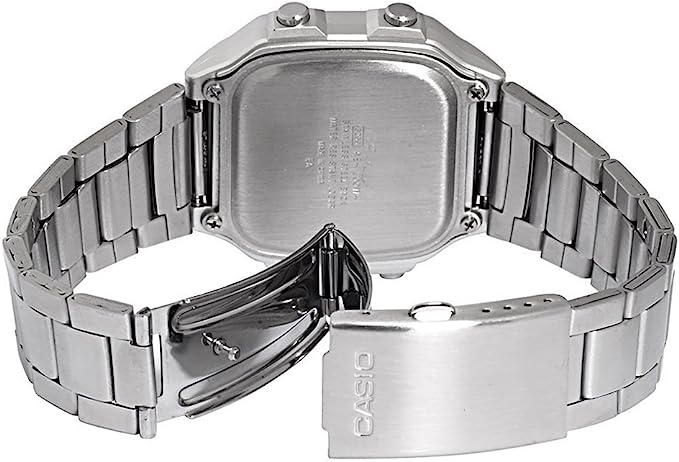 Illuminazione del quadrante - Cinque allarmi giornalieri - Calendario automatico che visualizza sempre la data esatta - Bracciale resistente ed elegante in acciaio inox - Durata della batteria per circa 10 anni