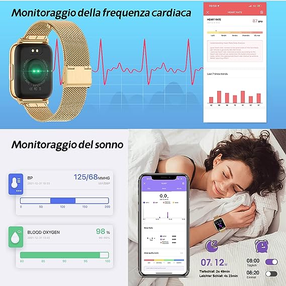 Smart Watch donna con chiamate per iOS e Android: compatibile con iOS 8.0 e Android 5.1 precedenti. Scarica e installa l'app gratuita