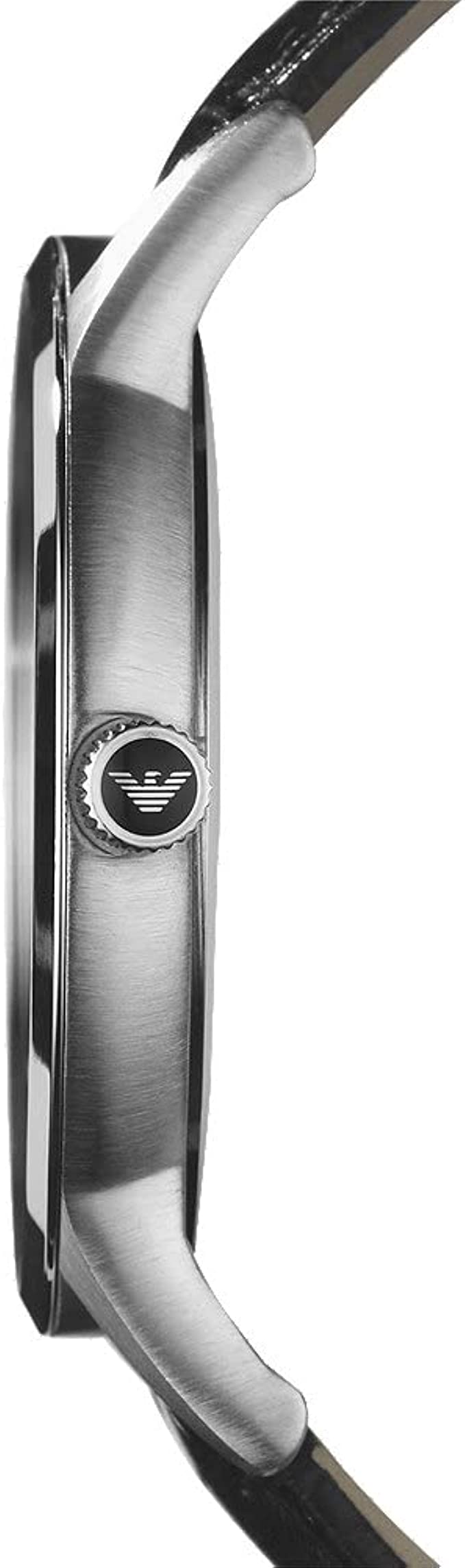Emporio Armani Orologio A Tre Lancette, Orologio in Acciaio Inossidabile, Dimensione Cassa 43 mm, da Uomo - Cassa da 43 mm, vetro minerale, movimento al quarzo a 3 lancette, display analogico con data, larghezza di banda 22 mm - Cassa rotonda in acciaio inox color argento con quadrante nero - Nero - Cinturino in pelle - Impermeabile fino a 50 m - In confezione regalo Emporio Armani