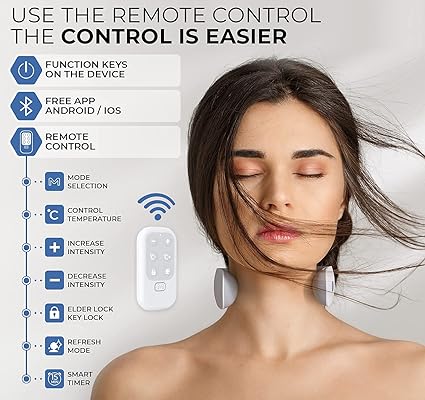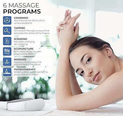 CONTRO IL DOLORE CERVICALE E L’AFFATICAMENTO. Il massaggiatore cervicale elettrico Enoa è ideale contro lo stress quotidiano e la rigidità muscolare del collo. Allevia la rigidità, il gonfiore e il dolore cervicale e rilassa le vertebre favorendo la circolazione sanguigna. Adatto anche dopo una lunga giornata di lavoro o per chi trascorre molto tempo alla guida. Non è un dispositivo medico ma ma un supporto da utilizzare come coadiuvante di trattamenti terapeutici prescritti dal medico. ERGONOMICO E CONTROLLO DA REMOTO. Grazie alla sua tecnologia costruttiva con elettrodi in acciaio inossidabile, allo snodo elastico centrale e al design ergonomico, il collare cervicale aderisce perfettamente al collo per un massaggio rilassante ed efficace. Facile da usare con APP gratuita per dispositivi mobili e chip integrato Bluetooth per una connessione fino a 2 volte più veloce. In alternativa, puoi utilizzare il telecomando oppure i comodi tasti funzione posti sull’apparecchio. TECNOLOGIA TENS-EMS e COMPRESSIONE TERMICA. Massaggiatore intelligente con tecnologia di Massaggio TENS con micro-impulsi a bassa frequenza, per penetrare in profondità, alleviare il dolore, donare benessere alla zona rachide-cervicale, confortare e rilassare i muscoli del collo. È dotato inoltre di una funzione riscaldamento con la possibilità di impostare 3 livelli di temperatura o una temperatura costante di 42 ° C. Sarà il tuo migliore compagno per un rilassante massaggio professionale. 6 MODALITÀ e 18 INTENSITÀ. Massaggiatore collo con 6 modalità di massaggio (Agopuntura, Massaggio, Tapping, Scraping, Combinato, Fisioterapia), 18 livelli di intensità, 3 di riscaldamento, per soddisfare le diverse esigenze di massaggio cervicale. Funzionamento ultra-silenzioso e azione intensa per alleviare in profondità l'affaticamento muscolare e garantirti il massimo relax. Il massaggiatore si spegne automaticamente al termine del ciclo di massaggio cervicale preimpostato di 15 minuti.