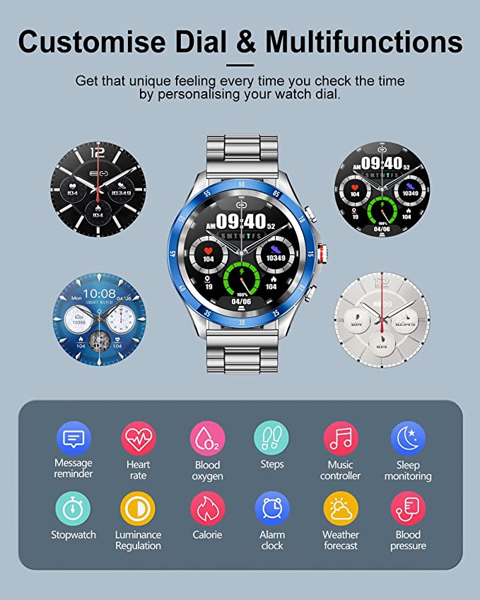 Smartwatch con Chiamata Bluetooth e Risposta Vivavoce, Orologio Fitness Impermeabile con Cardiofrequenzimetro, SpO2, Notifiche Messaggi, Contapassi, Cronometro Orologio Sportivo per Android e IOS. Smartwatch LIGE con microfono supporta chiamate a due vie. Dopo la connessione, lo smartwatch può essere utilizzato in qualsiasi momento per rispondere o effettuare chiamate, e può essere aggiunta una rubrica veloce, rendendo la vita più comoda. Il suono dell'orologio è forte, in modo da poter sentire chiaramente e chiaramente. Monitoraggio GPS, frequenza cardiaca per tutto il giorno, controllo della musica e della fotocamera, sveglia, cronometro, promemoria , regolazione della luminosità. Monitoraggio del Sonno. Registra in tempo reale la frequenza cardiaca, la pressione sanguigna, inoltre è possibile ottenere un rapporto sulla salute nell'app. Traccia il tuo stato di sonno (sonno profondo, sonno leggero e tempo di risveglio). Avvertenza: tutti i dati di cui sopra sono solo di riferimento e non possono sostituire le cure mediche. Il braccialetto intelligente può anche ricevere chiamate in arrivo/messaggi/notifiche app (inclusi SMS, Facebook, WhatsApp, Twitter, Instagram, Facebook Messenger e altro). Supporta 20 modalità sportive, può essere collegato al GPS del telefono cellulare e registra i dati delle attività quotidiane come passi, calorie, distanza e tempo di attività. IP67 è impermeabile, ma non immergere a lungo in acqua. 200 possibili quadranti sull'app, 2 cinturini intercambiabili (cinturino in metallo e cinturino in silicone). Compatibile con sistemi Android 5.0+ e iOS 9.0+ (generalmente tutti i telefoni cellulari possono essere compatibili). Si prega di verificare la versione del vostro smartphone in