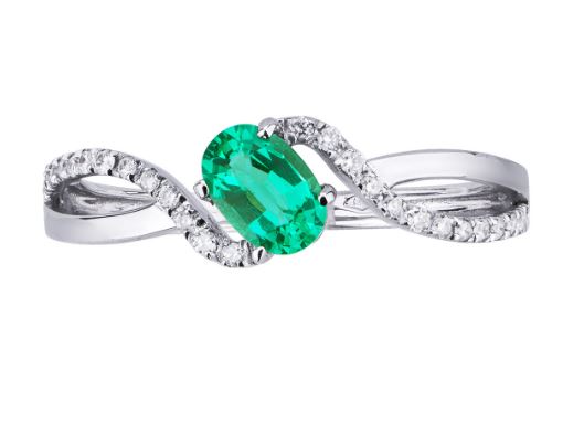 Gioielli di Valenza. - Anello in Oro Bianco 18k con incastonato Smeraldo centrale taglio ovale e sui lati Diamanti taglio brillante Colore H e Purezza Vs.- Garanzia - L'articolo verrà corredato di una elegante e raffinata confezione e dalla garanzia di Gioielli di Valenza. Caratura brillanti 0,11 K, Smeraldo 0,35 K