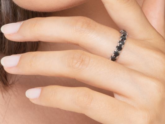 Gioielli di Valenza - Eternity a griffe in Oro Bianco 18k e Diamanti neri. Caratura totale diamanti neri 2,75k - Peso 3,52g