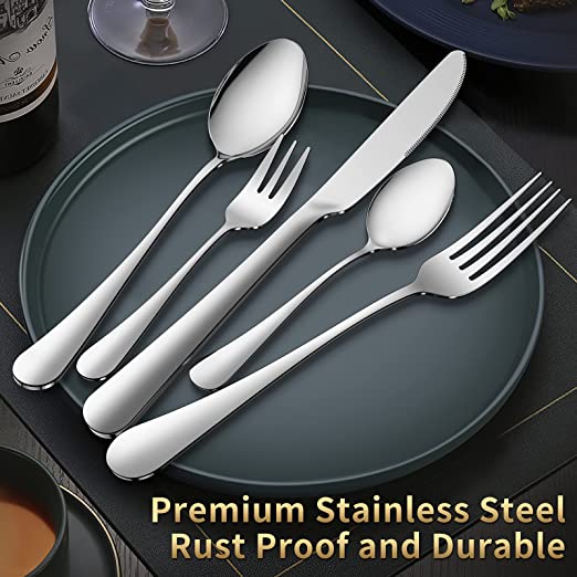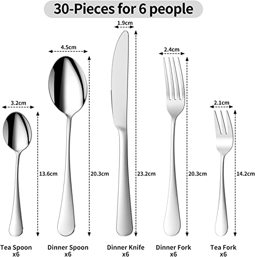 Set di Posate, 30 Pezzi per 6 Persone, Acciaio Inox, Lucidate a Specchio - Lavabili in Lavastoviglie e Antiruggine