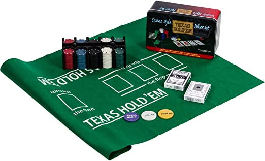 Set da Poker / Blackjack in Scatola di Metallo - Fiches da Poker da 200 Pezzi - 2 mazz di carte - Dealer - Small Blind - Big Blind -Tappetino da Gioco